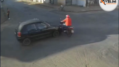 Motorista avança parada obrigatória e motociclista fica gravemente ferido