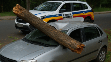 Tronco de árvore cai sobre carro com família em Patos de Minas; duas passageiras passam mal e recebem atendimento médico