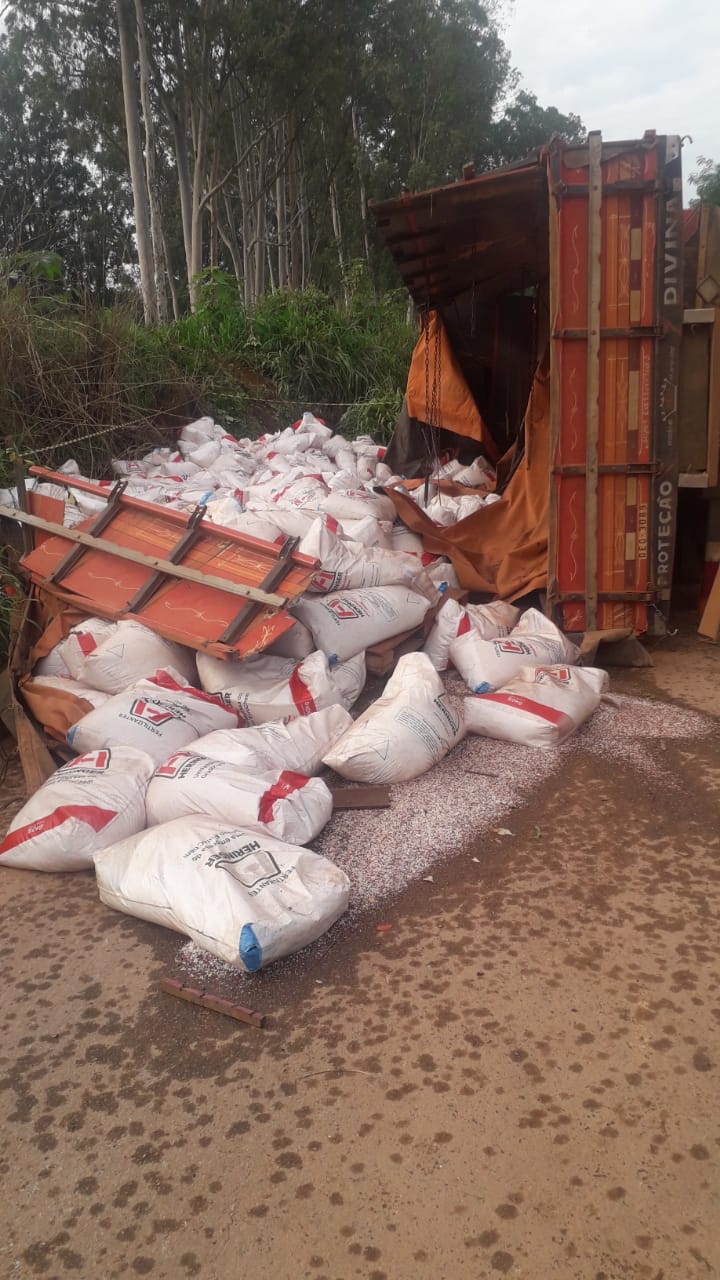 O caminhão, que transportava insumos agrícolas para uma fazenda na região, seguia no sentido Coromandel-Paracatu quando colidiu com um eucalipto caído na pista, fazendo o motorista perder o controle e tombar o veículo.