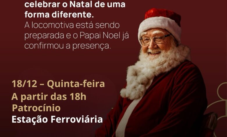 Trem Natalino chega à Estação Ferroviária e integra programação do Sonhos de Natal em Patrocínio