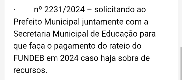Vereador Natanael Diniz pressiona prefeitura a pagar rateio do Fundeb para servidores da educação